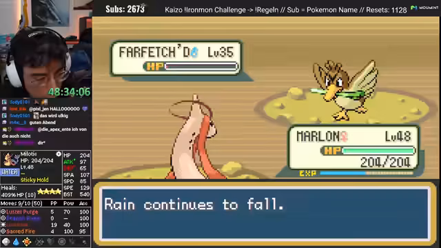 02:53:36Der Fokus kehrt zum Pokémon-Spiel zurück, wo der Streamer strategische Entscheidungen für seinen Ironmon-Run bespricht. Er bewertet ein Pokémon mit dem Namen 'Sherox' und analysiert seine Movesets, Statistiken und Typen-Schwächen. Insbesondere diskutiert er, ob Flash Fire Sherox einen Vorteil bietet und wie es im Vergleich zu anderen Pokémon wie Milotic abschneidet. Der Streamer reflektiert über die Herausforderungen, gute Pokémon mit starken Moves zu finden, und wie Glück und Pech den Verlauf des Runs beeinflussen. Diese Teile sind zentral für den Stream und zeigen die taktische Tiefe des Spiels.