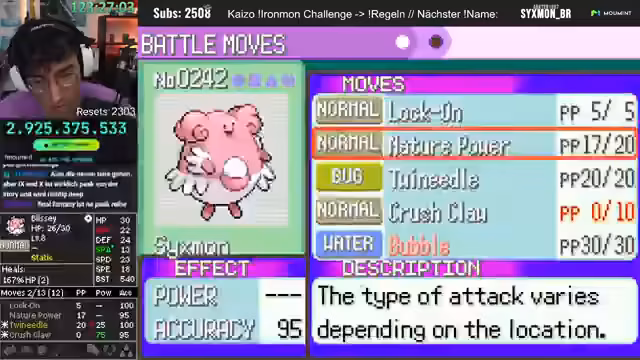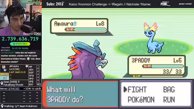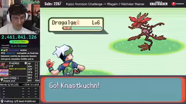 02:29:21Der Streamer geht auf die technischen Voraussetzungen für sein Ironmon-Spiel ein. Er erwähnt den Netdex-Patch, der ihm ermöglicht, nur Pokémon aus den Generationen 1 bis 3 zu spielen, und verlinkt den Ironmon Discord. Bei der Bewertung von potenziellen Pokémon für das Team hat sich seine Strategie entwickelt. Er vergleicht nicht mehr nur die Basisstatistiken (BST) direkt, sondern bewertet deren Verhältnis zum Level des Pokémon, um bessere Entscheidungen zu treffen und Resets vermeiden zu können.