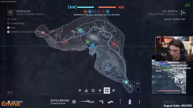 00:10:53Der Streamer kritisiert den Begriff 'Spüle' und spielt im Stehen, was ihm Schwierigkeiten bereitet. Er erwähnt, dass Zuschauer ihre EA-Konten mit Twitch verbinden müssen, um Drops zu erhalten. Beim Test des neuen 'King of the Hill'-Modus stellt er fest, dass der Modus sehr aufreibend ist und dass die Waffenbalance hier einen starken Einfluss hat. Er äußert sich überrascht über die Stärke einer gerade freigeschalteten Waffe mit sehr wenig Rückstoß.