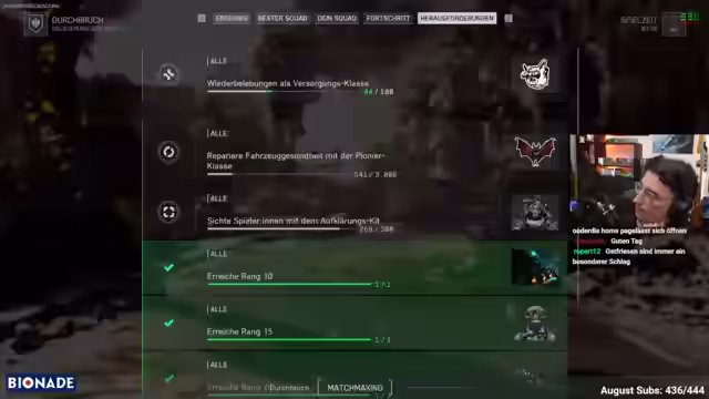01:10:17Im Mittelpunkt des Streams steht die Diskussion über das aktuelle Battlefield-Spiel, in dem der Streamer verschiedene Waffen und Fähigkeiten seiner Klassen analysiert. Er erwähnt speziell den Granatwerfer, der mit Flammen-Feuergranaten als übermächtig beschrieben wird, da er Gegner hinter Deckungen effektiv bekämpfen kann. Der Spieler beschreibt die Fähigkeiten seiner Klasse, insbesondere die passive Fähigkeit, die bei Erfüllung des Balkens für 6 Sekunden einen leichten Wallhack und verbessertes Hören ermöglicht. Er bezeichnet diese zwar als stark, aber gleichzeitig schwierig zu halten und zu verlängern.