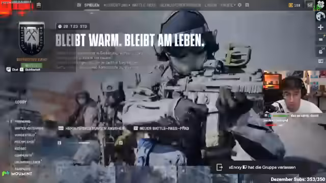 02:41:36Der Streamer berichtet von technischen Problemen mit der Regeneration in der Winter-Map, vermutlich aufgrund von Kältemechaniken. Es wird diskutiert, ob dies ein beabsichtigtes Feature ist oder ein Bug. Die Map Brooklyn wird als ungewöhnlich beschrieben, mit Schnee bedeckter Umgebung und reduzierter Sichtbarkeit. Waffen sind mit Schnee überzogen, was visuell an Tarnung erinnert. Es gibt Überlegungen, ob die Kälte die Regeneration verhindert. Der Streamer bemerkt FPS-Probleme und Audio-Bugs, die das Gameplay beeinträchtigen. Er versucht, verschiedene Waffen auszuprobieren, darunter eine Shotgun, bemerkt aber Änderungen in der Handhabung.