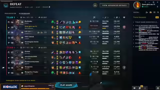 01:56:51Nachdem er sich auf die Master Yi-Buffs gefreut hatte, spielt er nun aus Prinzip andere Champions, wie den gerade gespielten Teemo Jungle. Die Enttäuschung ist spürbar, da die Buffs nicht wie erwartet eingetroffen sind und er das Gefühl hat, dass "alles kacke" ist. Dies führt zu einer generellen Spielweise, die weniger auf optimale Meta-Picks abzielt, sondern mehr auf Lust an der Sache und neue spielerische Ansätze, wie er bei der Championwahl erwähnt.