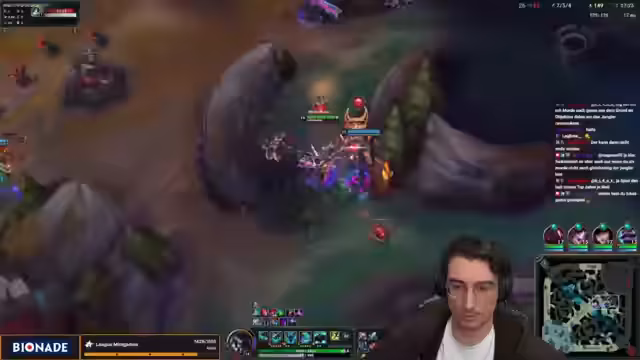 02:38:08Trotz anfänglicher Fehltritte und der bereits kritisierten Probleme mit der Ultimate nutzt das Team einen Sieg gegen einen Shaco. Der Streamer führt das Team an und fordert zum Baron-Nashor auf. Nachdem der Shaco-Klon eliminiert wurde, greift das Team erfolgreich an. Der Streamer lobt die "flawless Taktik" des Teams, insbesondere bei der Baron-Nashor-Situation, und feiert den knapp errungenen Sieg, der trotz seiner individuellen Fehler gelang.