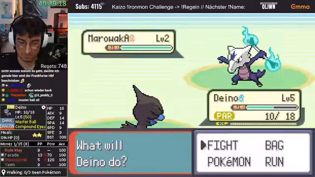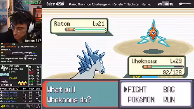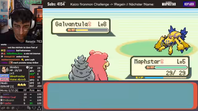04:17:38Der Streamer kämpft sich durch mehrere taktisch herausfordernde Kämpfe, bei denen er manchmal unkonventionelle Movesets wie einen Luxus-Aufruhr einsetzt. Ein gefundenes Pokémon mit 8 Special-Defense wird als interessant eingestuft, aber der Run endet abrupt. Bei einem anderen Run stellt er fest, dass ein Pokémon nicht nur alle 0 IVs gerollt hat, sondern auch der gegnerische Trainer ein starkes Team zusammengestellt hat, was die Situation komplexer macht.