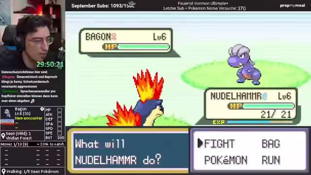 06:48:07Der Streamer erklärt, warum er nicht vom Tisch speichert, da die Kernregel in Ironmon Up Standard ist, dass man mit der Mutter reden muss. Außerdem regeneriert jedes Mal die ROM komplett neu, wenn man resettet. Er erwähnt, dass er Hunger hat und sich bald etwas zu essen holen muss. Der Streamer bedankt sich bei den Zuschauern für ihre Unterstützung und freut sich über neue Abonnements. Es wird über die Wichtigkeit von Moves von Anfang an diskutiert. Der Streamer kündigt an, dass er Basti einen Ehrenrun geben wird. Es folgt eine humorvolle Bewertung verschiedener Pokémon, wobei der Streamer anzügliche Kommentare abgibt. Er nimmt einen großen Falafel in den Mund und bereut es sofort. Es wird über den Lecker Milch Raid und das Emote Game gesprochen. Der Streamer fängt ein Pokémon mit Sex Speed auf einer Minus Speed Nature und kommentiert dies humorvoll. Er kündigt an, nach dem nächsten Pokémon zu fischen und verabschiedet sich von einem Zuschauer.