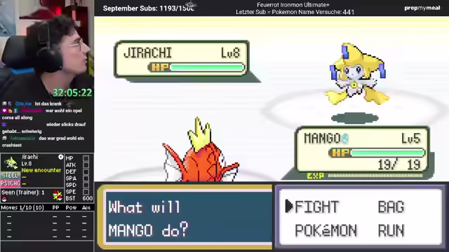 05:54:23Der Streamer scherzt über den Verlust des Zeitgefühls während des Streams und erwähnt, dass er sich bald etwas zu essen holen muss. Es wird über vergangene vielversprechende Runs und aktuelle Pokémon-Fänge diskutiert, wobei der Streamer einige Namen vergibt und die Stats der Pokémon bewertet. Er äußert sich kritisch über einige Pokémon und deren Fähigkeiten. Anschließend kommt das Thema Auto auf, genauer gesagt ein Peugeot 2008 als Übergangsfahrzeug, während sein eigentliches Auto repariert wird. Der Streamer hofft, dass es sich nicht um einen wirtschaftlichen Totalschaden handelt. Er lobt den Growth eines Pokémon und betont, dass er jetzt TMs benötigt. Es folgt eine Diskussion über Attacken und verpasste Chancen im Spiel, wobei der Streamer frustriert feststellt, dass ein Gegner ein krankes Team hat.