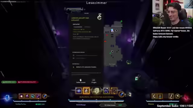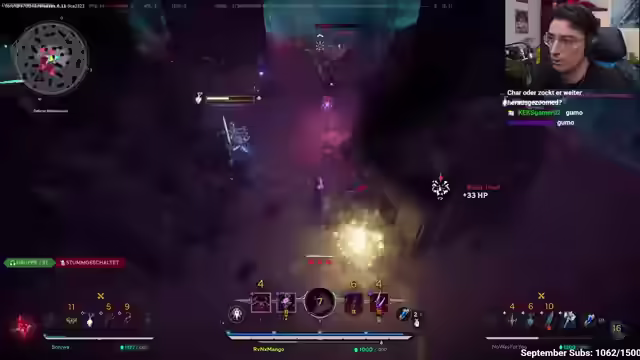 01:34:43Es wird schnell gelootet und festgestellt, dass ein Team in der Nähe reingeportet ist. Diskussionen über den Shop und die Nützlichkeit bestimmter Gegenstände, insbesondere Grimwolds Orb, der als übergeil beschrieben wird. Die Gruppe bewegt sich zu Teleportern, wobei Kämpfe erwartet werden. Ein Team ist bereits in der Zone, was zu einer vorsichtigen Annäherung führt. Es kommt zu einem Kampf mit einem Boss, der besiegt wird. Die Gruppe diskutiert über ihre Strategie und die Stärke verschiedener Sets. Dala und Grimm werden als besonders stark hervorgehoben. Die Gruppe entscheidet sich, wo sie droppen möchte und sucht nach Truhen, wobei sie einen Teleporter zum Untergeschoss entdeckt, der aber 1000 Gold kostet. Gegner werden gesichtet und angegriffen, wobei Irenes Hammer als nützlich erachtet wird. Die Gruppe sammelt Gold, um ins Untergeschoss zu gelangen, und öffnet Legendary-Kisten. Es wird überlegt, ob man eine Rift Challenge machen soll, aber man entscheidet sich dagegen. Die Gruppe findet Upgrades für Dala und diskutiert über fehlende Set-Teile.