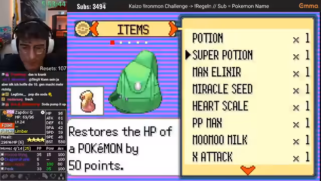 Neue Pokemon lernen und Resets spammen EMERALD !NATDEX KAIZO !IRONMON -> !regeln <- !emma !pmm @rvnxmango