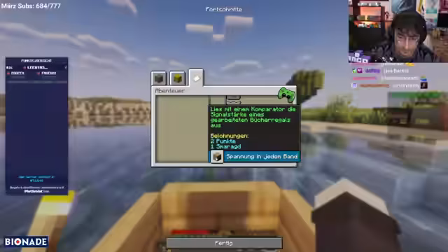 01:29:53Die Chancen für einen Re-Roll, bei dem die Streamerin wieder spielen darf, werden als gering eingeschätzt. Sie bittet Lukas, die Zeit zu nutzen, um einen Masterplan und ein Masterpathing für das Sammeln aller Achievements zu erstellen. Fische werden als erster Schritt identifiziert. Lukas braucht eine Perücke und setzt sich einfach mal Masern ins Stream. Es wird diskutiert, ob ChatGBT eine chronologisch logische Reihenfolge für die Minecraft-Achievements erstellen kann. Die Streamerin betont, dass sie eine logische Reihenfolge benötigt, um mit guter Rüstung Sachen machen zu können. Sie erhält eine Reihenfolge mit Risikoeinschätzung, die sie in ihren Doc kopiert. Da sie nicht alle Punkte holen kann, markiert sie alles grün, was sie schon hat. Sie stellt fest, dass sie noch kein Eisen geschmolzen und keinen Ofen gecraftet hat. Die Streamerin schaut sich die Inventare anderer Spieler an, während ihre Lasagne fertig ist.