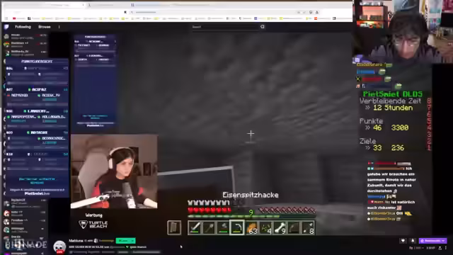 01:15:31Die Streamerin erwähnt, dass sie vor dem Stream Pete's Meets Pre-Show gesehen hat, aber nicht Pete's Meets Stream selbst. Es wird vermutet, dass der Server möglicherweise zurückgesetzt werden muss, um den vorherigen Zustand wiederherzustellen, bevor die Streamerin gestorben ist. Als nächsten Schritt plant sie, eine volle Eisenrüstung zu bauen und idealerweise drei Diamanten zu finden. Sie erinnert sich daran, wo sich eine Rüstfestung mit Allies befindet. Nach ihrem Tod analysiert sie, wie andere Spieler gestorben sind, und stellt fest, dass einige Tode durch unerwartete Creeper-Angriffe verursacht wurden. Sie reflektiert über ihren eigenen Tod durch Ertrinken und die Enttäuschung darüber. Während sie auf eine Lösung für ihr Inventarproblem wartet, äußern die Zuschauer Ungeduld. Die Streamerin vermutet, dass die Inventarwiederherstellung manuell erfolgen muss, was einige Zeit in Anspruch nehmen wird. Sie verlässt den Server erneut und geht, um sich eine Lasagne in der Mikrowelle zuzubereiten.