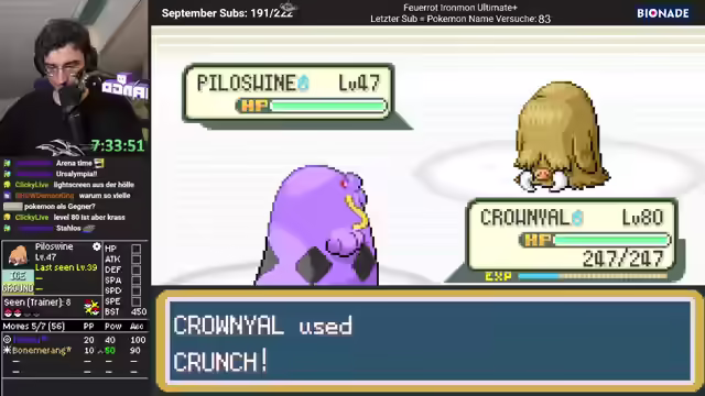 01:26:47Die Erkundung der Höhle geht weiter, wobei der Fokus auf der Suche nach Items und dem Besiegen von Trainern liegt. Bubblebeam wird effektiv gegen ein Hundemon eingesetzt. Es wird ein Ninjatom-Coverage-Checkpoint identifiziert, der ohne entsprechende Coverage das Ende des Runs bedeuten würde. Thunderbolt wird als starke Attacke hervorgehoben. Ein Trainer mit einem robusten Pokémon wird besiegt, wobei dessen hohe Widerstandsfähigkeit gegen verschiedene Attacken, einschließlich Crunch und Blastburn, überrascht. Die Werte des eigenen Teams werden als beeindruckend eingeschätzt. Es wird über die Verständlichkeit bestimmter Aussagen für zukünftige Generationen spekuliert und humorvoll über die Möglichkeit einer Zeitmaschine nur für Text nachgedacht. Der richtige Weg wird gefunden, nachdem man sich kurzzeitig verirrt hat.