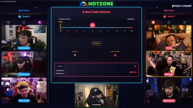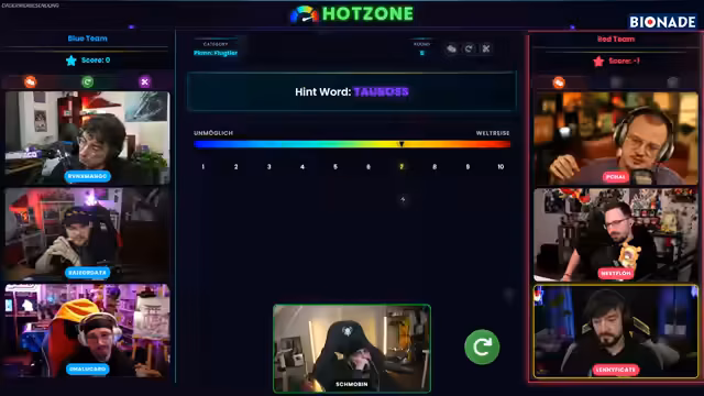 02:19:48Lenny hat ein blaues Shiny Nidoking auf einer Skala von 1 (langweilig) bis 10 (super) als 7 bewertet, was von den anderen als 'krankestes Misplay' und maximal als 4 eingestuft wird. Die Diskrepanz in der Bewertung wird diskutiert, wobei die Teilnehmer sich fragen, ob Lenny auf der gleichen Wellenlänge ist. Es wird festgestellt, dass die Bewertung von Shiny Nidoking sehr subjektiv ist und eine breite Spanne von 5 bis 9 rechtfertigen könnte. Der blaue Hintergrund in Lennys Stream wird als möglicher Einflussfaktor auf seine Bewertung des blauen Nidokings genannt. Aufgrund der großen Meinungsverschiedenheiten und der breiten möglichen Spanne wird entschieden, den grünen Reroll-Joker zu nutzen, um eine neue Frage zu erhalten.