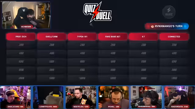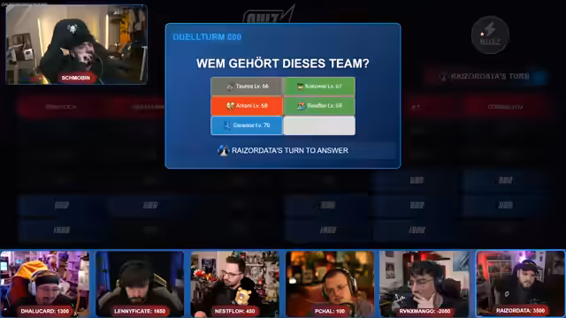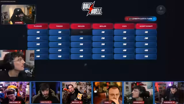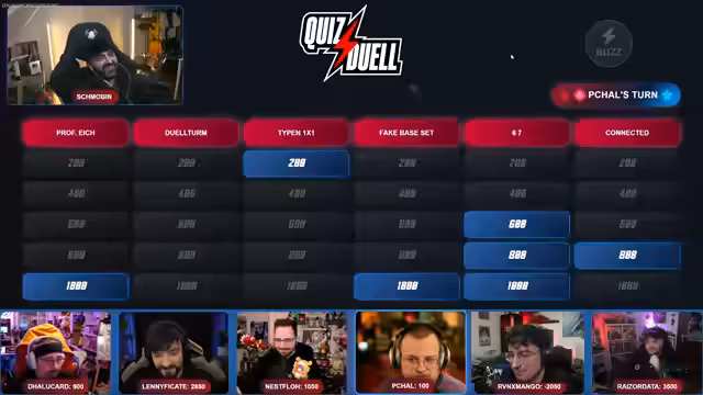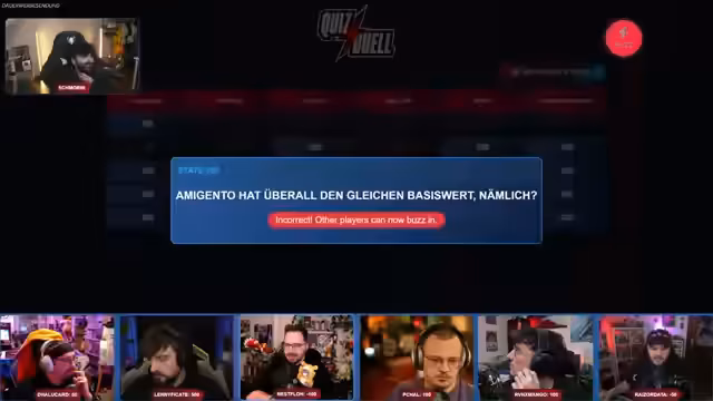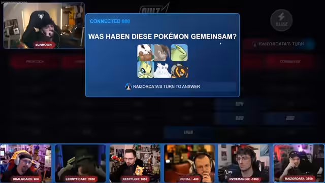 00:15:50Pünktlich um 18:00 Uhr beginnt das Pokémon-Quiz, und die Teilnehmer loggen sich in das System ein. Es gibt anfängliche technische Schwierigkeiten beim Einrichten der Kameras und Overlays, aber diese werden schnell behoben. Der Streamer erklärt die Regeln des Jeopardy-ähnlichen Quiz: Kategorien von 100 (einfach) bis 500 (schwer) Punkte, halber Punktabzug bei falscher Antwort und die Möglichkeit für andere, durch Buzzern die Frage zu übernehmen, ebenfalls für halbe Punkte. Es gibt zwei Boards, wobei das zweite Board doppelte Punkte bietet. Die erste Runde startet mit der Kategorie „Kegleon 100“, bei der nach dem Fangort von Hornliu in Pokémon Gelb gefragt wird, was sich als trickreiche Frage erweist, da Hornliu in dieser Edition gar nicht fangbar ist. Die Teilnehmer zeigen bereits ein hohes Maß an Engagement und Humor, während sie versuchen, die ersten Fragen zu beantworten.
