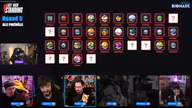04:02:08Die letzte Kategorie des Quiz fordert die Teilnehmer auf, alle bekannten Pokébälle zu nennen. Jan beginnt mit dem Pokéball, gefolgt vom Superball und Meisterball. Die Runde nennt weitere Bälle wie Ultraball, Flottball, Timerball, Finsterball, Wiederball, Premierball, Safariball, Tauchball, Netzball, Heilball, Nestball, Luxusball, Mondball, Turboball, Freundesball, Jubelball, Köderball, Schwerball, Sympatieball, Turnierball, Flügelball, Düsenball, Levelball, Federball, Rätselball, Leichtball, GS-Ball und Urball. Die Schwierigkeit liegt darin, sich an alle verschiedenen Arten von Pokébällen zu erinnern, einschließlich spezieller Bälle aus verschiedenen Generationen und Spielen. Es gibt kurze Diskussionen über die Gültigkeit bestimmter Bälle, wie den GS-Ball, der nicht zum Fangen von Pokémon verwendet werden kann. Die Teilnehmer müssen sich an viele Namen erinnern, was zu einigen Ausfällen führt, da nicht alle Bälle sofort präsent sind. Am Ende werden noch einige Bälle genannt, die den Teilnehmern nicht mehr eingefallen sind, wie der Kiloball oder Gewichtsball, die jedoch nicht existieren. Die Runde endet mit einer knappen Entscheidung und der Erkenntnis, wie viele verschiedene Pokébälle es im Laufe der Jahre gegeben hat.