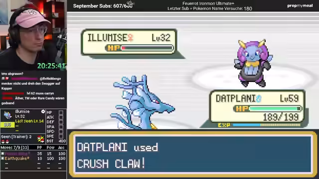 01:32:55Vor dem Betreten des Mount Moon Dungeons wird das Team final auf den Kampf vorbereitet. Es wird festgestellt, dass die aktuelle Move-Setzungen nicht ausreichen, um die darin erwartbaren Herausforderungen zu meistern. Insbesondere fehlt eine effektive Attacke gegen Wasser- und Drachentypen. Der Streamer entscheidet, dass Earthquake als neues Move erlernt werden muss. Da dies jedoch unmöglich ist, ohne den aktuellen Pokémon zu ersetzen, sieht sich der Streamer gezwungen, einen risikoreichen Weg einzuschlagen oder auf Glück bei der Findung eines besseren Pokémon zu hoffen.