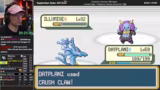 02:57:29Die Kämpfe im Rock Tunnel führen zu einem kritischen Zustand. Ein Pokémon mit Hochhufkick überlebt einen Angriff knapp ohne zu Crashen. Der Streamer ist gezwungen, sich mit einem schwachen Move wie Constrict zu behelfen, was zu einer sehr knappen und spannungsreichen Situation führt. Nach einem hektischen Heilen und weiteren Angriffen wird der Kampf letztendlich erfolgreich abgeschlossen, was als große Erleichterung empfunden wird.