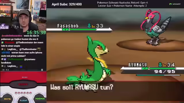 01:32:54Es kommt zu einem Kampf gegen Kukamada, den er mit Laubklinge besiegt. Er stellt fest, dass die Gegner oft Boden-Pokémon einsetzen und wechselt den Fisch nach vorne. Er kommentiert, dass er schon lange kein Pokémon mehr verloren hat. Er entdeckt die Attacke Überflutung, die den Typ des Ziels in Wasser ändert, lehnt es aber ab, sie einzusetzen. Er levelt seine Pokémon auf und überlegt, Skipper einzusetzen, entscheidet sich aber dagegen. Er begegnet einem Trainer mit drei Mülltüten-Pokémon und besiegt ihn. Seine Pflanze schläft und ist verwirrt, und er setzt Wasserdüse ein. Er heilt sein Team und wartet auf einen schwierigen Kampf. Er findet einen Donnerstein, braucht aber einen Wasserstein. Er levelt sein Team auf und bereitet sich auf die Elitematches vor. Er spielt Ironmon auf dem Handy, weil das Randomisieren extrem komplizierter ist.