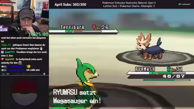 00:15:20Der Streamer erkundet Route 6 und beendet die Mission von Team Plasma. Er inspiziert seinen PC-Box und muss feststellen, dass sein Pokémon Brana-Watz gestorben ist, weshalb er es ersetzen muss. Er entscheidet sich gegen einen nutzlosen Fisch und für eine Katze, da andere Pokémon erst spät entwickelt werden. Das aktuelle Team ist schwach, weshalb er Tränke kauft, um das Training zu optimieren. Er plant, Ryomaso auf Level 31 zu bringen, um die bevorstehende Boden-Arena zu bestehen.