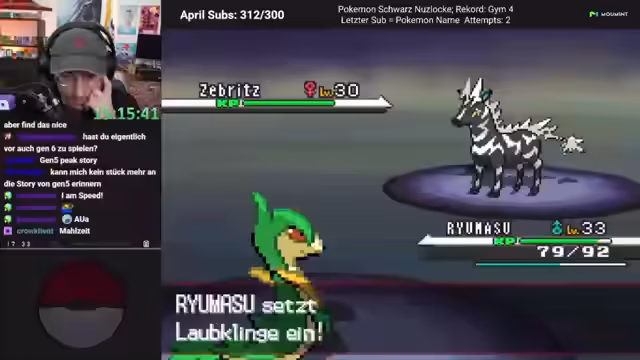 03:10:00Der Streamer kehrt zu Pokémon Schwarz zurück und kämpft gegen mehrere Wild-Pokémon. Dabei wird die Notwendigkeit von Effektiven Attacken deutlich. Die Beute besteht aus einem Hyperball und weiteren Items. Die Suche nach neuen Teammitgliedern geht weiter, wobei ein Lockling als nützlicher zusätzlicher Kämpfer angesehen wird. Die strategischen Entscheidungen für den weiteren Spielverlauf werden getroffen.