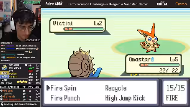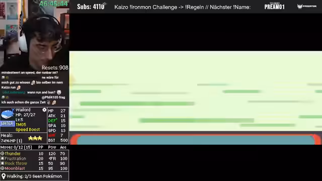 02:57:38Die Herausforderung beginnt mit der Suche nach einem geeigneten Start-Pokémon, da das erste gefangene Pokémon mit einem Wert von nur 7 Speed als unbrauchbar gilt. Nach einem Reset des Spieles gelingt es ihm, ein stärkeres Pokémon zu fangen. Das Gameplay erfordert ein hohes Maß an Taktik, da sich Pokémon bei der Entwicklung komplett zufällig verändern können, was das Risiko, den gesamten Lauf zu verlieren, exponentiell erhöht. Der Streamer navigiert durch diese Komplexität und stellt fest, dass selbst stark erscheinende Pokémon durch zufällige, ungünstige Entwicklungen zum Scheitern verurteilt sind.