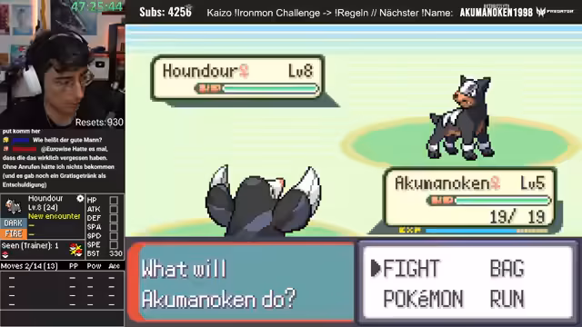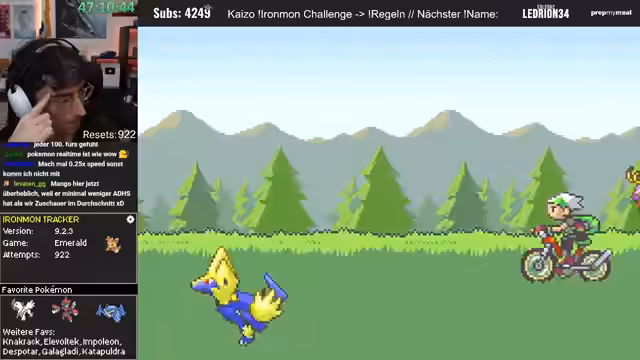 02:47:14Der Streamer kündigt den Wechsel zu Pokémon an und stellt die Herausforderung des Kaiser Ironmon-Modus vor. Es handelt sich um eine extreme Nuzlocke-Variante, bei der Pokémon, Attacken, Fähigkeiten und Werte zufällig generiert werden und über 50 strenge Regeln gelten, darunter ein Verbot von Heilen. Er berichtet von seinen bisherigen gescheiterten Versuchen, die er als 'Gambling ohne Geld' bezeichnet, und beginnt einen neuen Lauf, bei dem sein erstes Pokémon bereits mit niedrigem Speed-Wert startet.