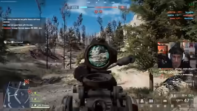 00:22:31Während des Spiels experimentiert der Streamer mit verschiedenen Waffen und Taktiken. Er wechselt von seinem bisherigen Setup zu einer DMR und später zu einer Sniper, um die Vorteile der Karte auszunutzen. Er bemerkt den 'gelbe Punkte Bug' und äußert seine Frustration darüber. Er beschäftigt sich intensiv mit dem Battle Pass und den Waffenfreischaltungen, um sein Setup zu optimieren. Die Kampfsituationen sind intensiv und er verteidigt eroberte Punkte aktiv, während er gleichzeitig seine taktischen Positionen anpasst.