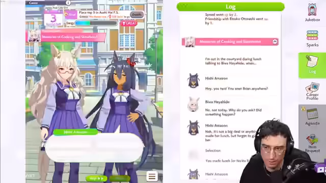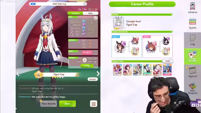 03:14:05Der Stream beginnt mit der Analyse eines Pferde-Teams, das auf Speed und Stamina ausgerichtet ist, während Wits anscheinend nebenbei mitlevelt. Dies führt zu starker Verwirrung über die korrekte Skillungsstrategie. Der Streamer entscheidet, alle Pferde auf Speed zu fokussieren und dabei Power und Guts zu vernachlässigen, da diese Attribute mit steigen. Ein Training mit Friendship-Bonus wird genutzt, um wichtige Werte zu erhöhen.