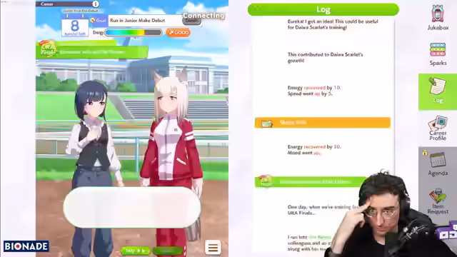 01:25:03Der Streamer identifiziert Stamina als eine weiterhin problematische Stat, die aber nicht direkt trainiert werden sollte. Stattdessen wird das Training auf andere Bereiche wie 'Power' und 'Guts' verlagert. Die anstehende Herausforderung besteht darin, das System zur Metaprogression zu verstehen und die nächsten Fähigkeiten freizuschalten, während das Team auf die nächsten, härteren Rennen vorbereitet wird.