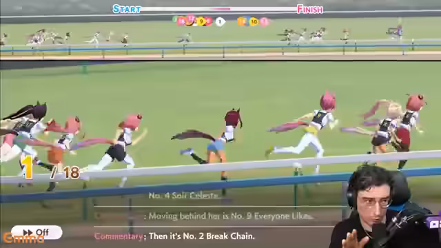 04:52:29Das letzte Rennen findet auf Firm Ground bei guter Witterung statt. Das Team muss hier zwingend gewinnen, um nicht aus der Karriere auszuscheiden. Trotz guter Vorbereitung und des Wunsches, "alles zu proggen", läuft das Rennen katastrophal ab. Ein anfänglicher Mangel an Stamina führt dazu, dass das Team komplett zurückfällt und nur den fünften Platz erreicht, was das Karriere-Aus bedeutet.