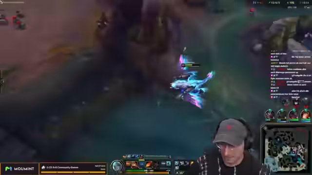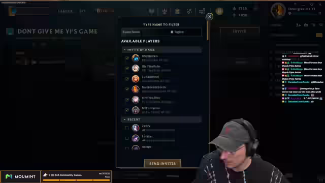 03:06:15Für die Community wird der Start eines Zero-Cooldown-5v5-Spiels angekündigt. Moderatoren sollen im Chat eine Liste der erlaubten Champions mitprotokollieren, die anschließend gepinnt wird. Der Streamer beginnt, potenziell problematische Champions wie Katarina, Kha'Zix oder Nidalee zu benennen, die perma-Knock-up oder andere unfaire Mechaniken haben könnten und daher ausgeschlossen werden sollen.
