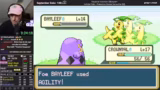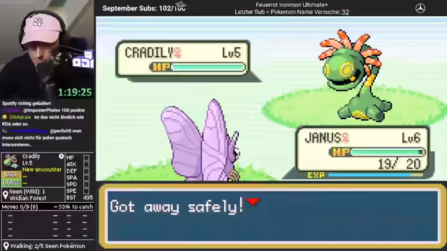 00:35:38Nach Abschluss der technischen Vorbereitungen startete der Stream offiziell das neue Abenteuer. Das Start-Pokémon wurde als Bisaflor mit der Attacke Megadrain und der Fähigkeit Intimidate festgelegt. Nachdem der erste Rivale besiegt und die erste Stadt erreicht wurde, erfolgte die erste Prüfung gegen einen Trainer im Wald. Obwohl das Team eine geringe Verteidigung aufwies, konnte der Run zunächst erfolgreich fortgesetzt werden. Ein erster Sieg gegen einen Cool Trainer gelang, was das Potenzial des Starters zeigte, auch wenn die Kämpfe knapp ausfielen und viel taktisches Geschick erforderten.