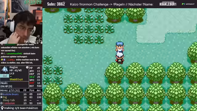 04:37:45Nach einem verlorenen Kampf, bei dem die Statverteilung des Pokémon kritisiert wird, analysiert der Streamer seine Fehler. Er konzentriert sich auf die Jagd nach einem neuen, besseren Pokémon. Ein Geist-Pokémon mit Sacred Fire und Aurora Strahl wird angesehen, doch aufgrund fehlender Moves nach der Stein-Entwicklung verworfen. Der Fokus liegt nun auf der Suche nach einem anderen, mit besserem Moveset und Statverteilung.