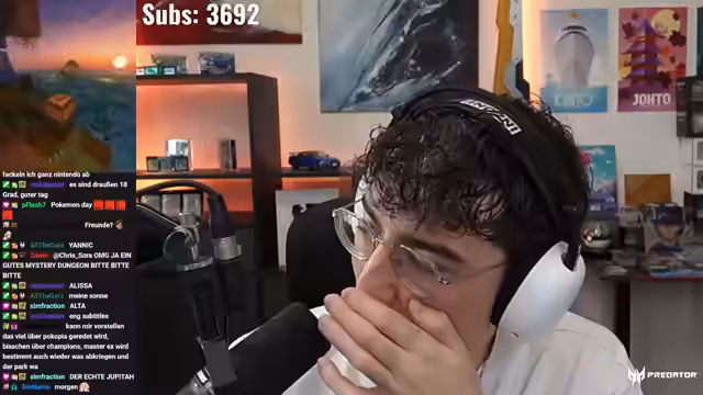 00:06:45Der Streamer trifft spät ein, nachdem er mit Stress und einem Sprint von nur 3-4 Minuten zu kämpfen hatte. Er begrüßt das Publikum und verkündet den Start des Streams für die Pokémon Presents. Nachdem technische Schwierigkeiten beim Finden des offiziellen englischen Streams auftauchen, entscheidet er sich, den japanischen Stream auf Twitch zu verfolgen, der bereits eine 'krasse Party' veranstaltet. Der Streamer zeigt sich sehr gespannt auf die bevorstehenden Ankündigungen.