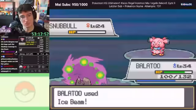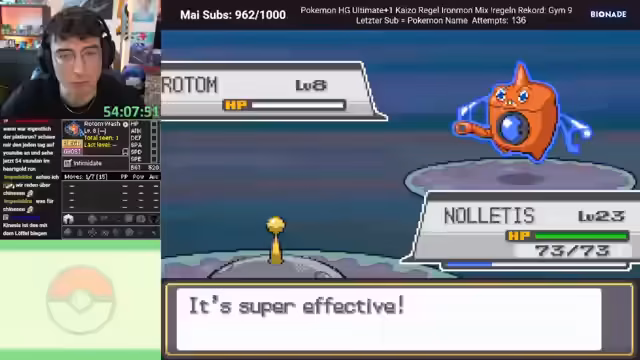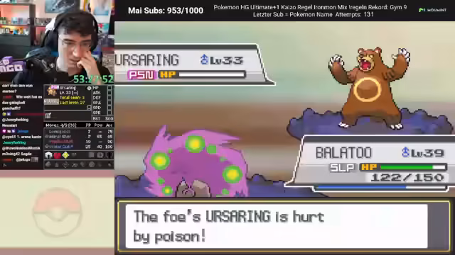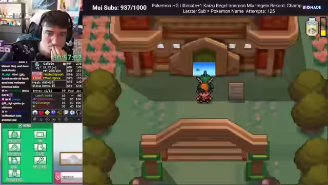 00:10:32Der Stream konzentriert sich auf den Pokémon-Run 'Heartgold Ultimate+ Ironmon'. Der Streamer befindet sich in der Stadt 'Ducatia City' und farmt Items. Er berichtet über seine Erfolge und Herausforderungen: obwohl er Heals beschränkt hat und sein Pokémon nur durch einen 'One-Shot'-Sieg durchkommt, ist er im Late-Game angekommen. Nachdem die Coverage gegen spezielle Gegner verbessert wurde, wird die Strategie angepasst. Eine wichtige Erkenntnis ist, dass ein Attackenwechsel zu 'Finte' und das Erlernen von 'Egelsamen' die Gewinnchancen erheblich steigert, da es effektive Abdeckung gegen starke Gegner bietet.