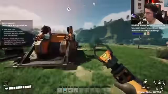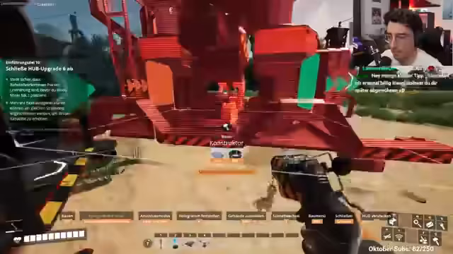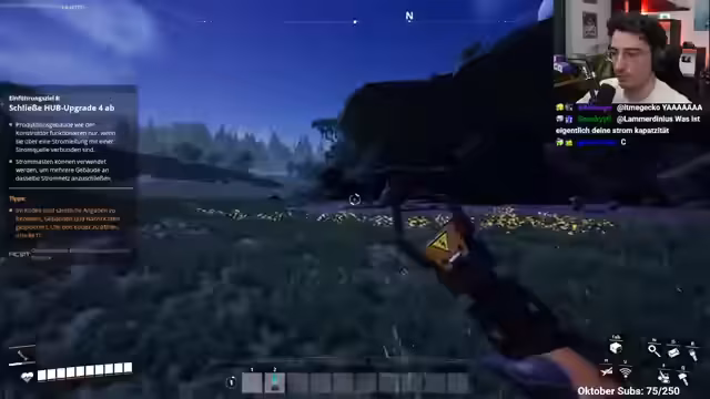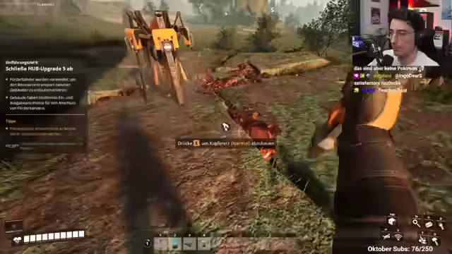 04:27:51Der Streamer beginnt seine Reise in 'Satisfactory' in der Felswüste. Er landet mit seinem Pod auf dem Planeten und muss diesen nun erkunden und ausbeuten. Zunächst muss er manuell Eisenherz abbauen, um die ersten notwendigen Gegenstände herzustellen. Das Ziel ist, den Hub aufzurüsten, wofür Eisenstangen und Eisenbarren benötigt werden. Er baut eine Ausrüstungswerkstatt, um einen mobilen Miner herzustellen, der den Abbau von Ressourcen automatisieren soll. Nach dem Bau des ersten mobilen Miners, der Eisen abbaut, plant er, einen Schmelzofen zu errichten, um Eisenbarren zu produzieren. Dafür benötigt er jedoch Kabel, die aus Kupfer hergestellt werden. Er macht sich auf die Suche nach Kupfererz und entdeckt weitere Vorkommen. Die Nacht bricht herein, und er muss sich um die Stromversorgung kümmern. Er plant den Bau eines Biomasse-Generators, um Energie zu erzeugen. Der Streamer genießt die Erkundung und das Entdecken der Spielmechaniken selbst, ohne auf Guides zurückzugreifen. Er beginnt, die ersten Schritte zur Automatisierung seiner Produktion zu unternehmen, indem er Schmelzöfen und Förderbänder plant.