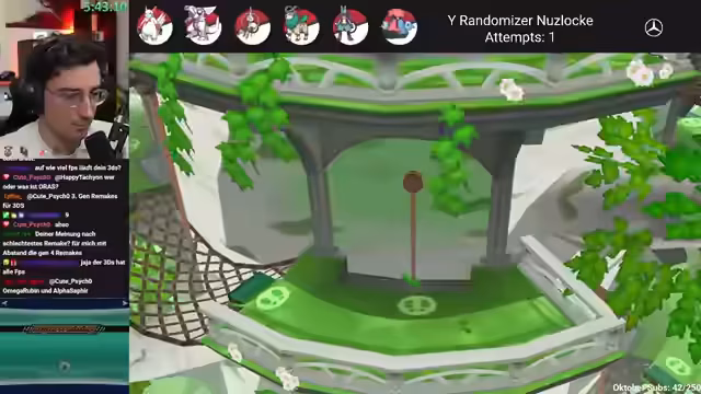 00:11:19Der Streamer hat Schwierigkeiten mit den Steuerelementen im Spiel und muss diese neu belegen. Es wird über die 'Feuerrot Ultimate Plus' Lore gesprochen, die ein Zuschauer verpasst hat. Das Level-Cap beträgt aktuell 34, was als sehr niedrig empfunden wird. Nach dem Abschluss einer Arena wird der Zugang zu einem Turm freigeschaltet. Es wird der Mega-Ring erhalten, kurz nachdem Glurak besiegt wurde. In einem unerwarteten Skript-Kampf wird ein Lucario gewonnen, das sofort Mega-entwickelt werden kann, was das Team erheblich verstärkt. Die temporäre Natur von Mega-Entwicklungen wird als positiv hervorgehoben im Vergleich zu permanenten regionalen Formen.