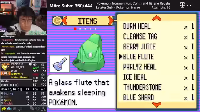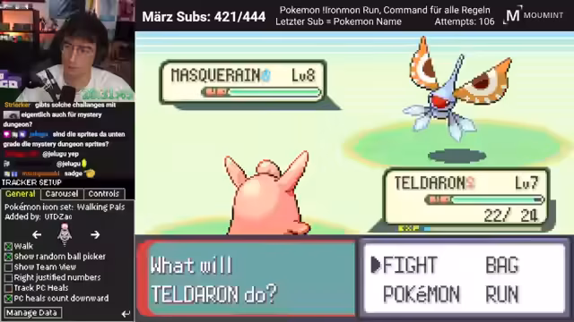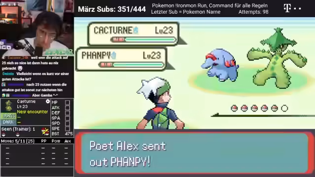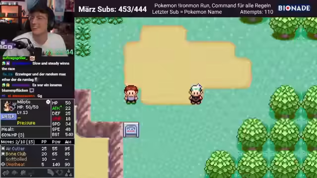 00:05:12Der Streamer wechselt in den Gamble-Modus, ein familienfreundlicher Gamble, bei dem es nur um Pokémon-Zucht geht. Er öffnet den neuesten ROM und ist überrascht, dass er lange nicht mehr hier war. Er hat den Iron-Man-Tracker fertig geschrieben und geht nun mit einem Ponyta in den Kampf, das sich spät entwickelt und komische Stats hat. Das Ponyta wird voraussichtlich nicht leisten können, was sich zeigt, nachdem der Rival besiegt wurde.