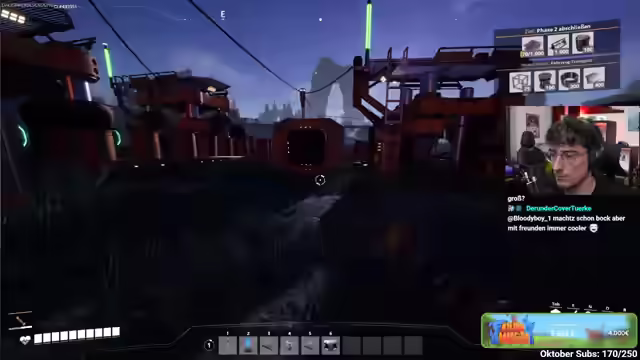09:32:34Ein Raid von Zuschauern wird freudig begrüßt. Der Streamer erklärt, dass er kürzlich mit Satisfactory angefangen hat und sich in seiner ersten Fabrik befindet. Das Ziel ist es, eine stabile Produktionslinie für Schrauben und verstärkte Eisenplatten zu schaffen. Es wird festgestellt, dass ein Überschuss an Eisenstangen vorhanden ist, und es wird beschlossen, diese für die Schraubenproduktion zu nutzen. Der Streamer experimentiert mit der Aufteilung von Ressourcenströmen, um die Produktion zu optimieren. Es wird eine Lösung gefunden, um die Eisenstangen gleichmäßig aufzuteilen und die Schraubenproduktion zu maximieren. Der Streamer plant, die Produktionslinie für verstärkte Eisenplatten zu erweitern und die Schraubenproduktion zu integrieren. Es wird festgestellt, dass die Eisenplattenproduktion nicht ausreicht, um den Bedarf zu decken, und es werden Maßnahmen ergriffen, um die Produktion zu steigern.