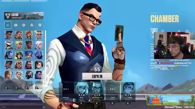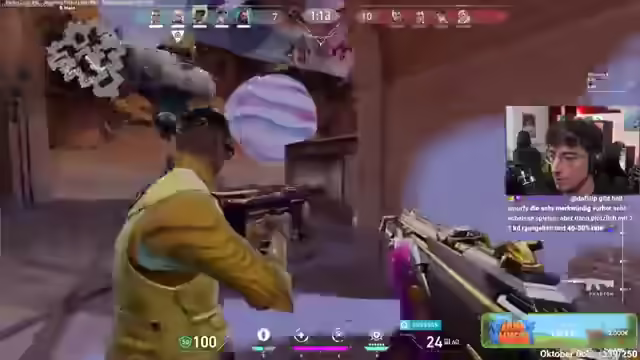 00:53:59Es wird beschlossen, ein Team-Deathmatch zu spielen, um Rayna auszuprobieren. Mango wird angewiesen, Rayna zu insta-locken. Es wird kurz über die vielen Kaufmänner im Spiel gesprochen. Während des Team-Deathmatches werden Spenden vorgelesen und die Spendenbereitschaft der Zuschauer gelobt. Das aktuelle Spendenziel liegt bei 1.419 Euro. Maluna gibt Tipps zu Raynas Fähigkeiten, wie Flashs und Heilung. Es wird überlegt, Timid für Chamber-Coaching hinzuzuziehen, aber zuerst soll Rayna gespielt werden. Mango fragt, ob er die Fähigkeit zum Schließen hat und ist überrascht, dass er das kann. Er bemerkt, dass er langsam im Spiel ist. Maluna erklärt, dass man in Valorant nicht sprayen darf wie in CS, sondern tappen soll. Sie erklärt, dass man sich in Raynas Ulti heilen und unsichtbar machen kann. Es wird kurz überlegt, ob Timid für Chamber-Coaching hinzugezogen werden soll, aber dann wird beschlossen, erst einmal Rayna zu spielen.