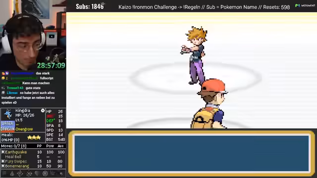 04:51:04Der zuvor nur teilweise absolvierte Turm wird nun mit einem nahezu leeren Moveset des Seedra-Kings restlos gesäubert. Das Pokémon zeigt hierbei beeindruckende Standfestigkeit und überleht Kämpfe durch geschicktes Setzen von Detect. Obwohl das Team Rocket Hauptquartier noch bevorsteht und das PP-Problem weiterhin als kritisch angesehen wird, hat der Run mit dem Sieg im Turm eine wichtige psychologische Hürde genommen und verspricht ein packendes Finale.