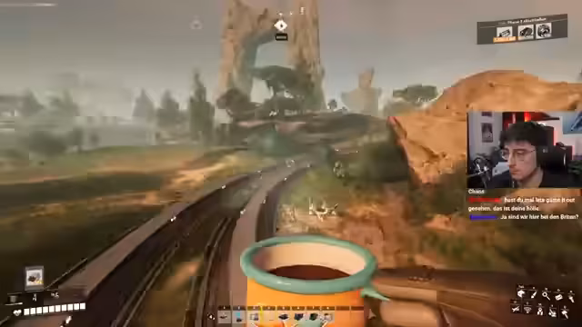 01:50:37Der Bau der zweigleisigen Strecke wird in Angriff genommen. Dies erweist sich als erhebliche physische Herausforderung, da tausende von Schienen über eine große Distanz durch unwegsames Gelände verlegt werden müssen. Der Streamer navigiert dabei um Monster herum und überwindet natürliche Barrieren wie Schluchten. Die Strecke wird als eine Art 'fliegende Eisenbahn' über eine Schlucht geführt, was zu einer beeindruckenden visuellen Konstruktion führt, aber auch technische Risiken birgt.