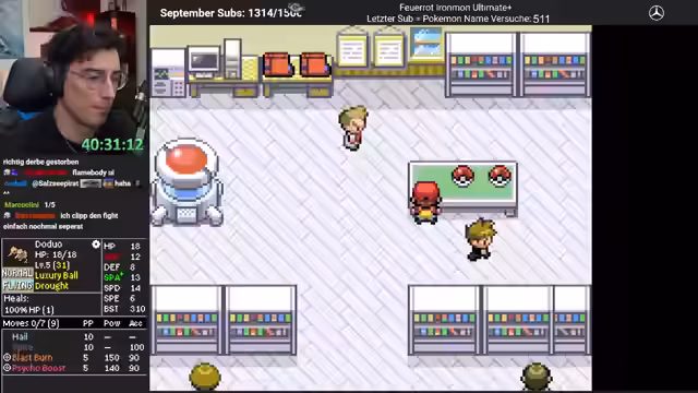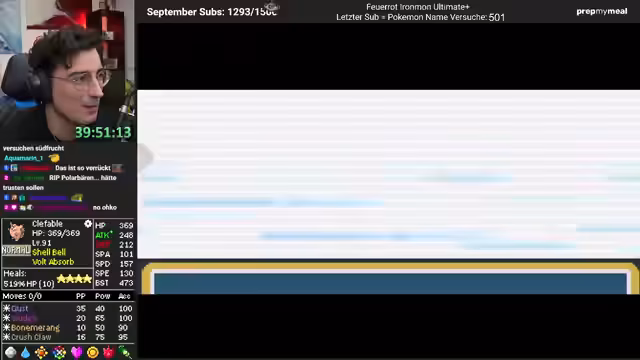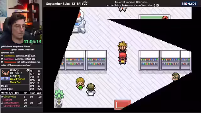 03:51:32Nach dem verlorenen Run beginnt der Streamer sofort einen neuen Ironman-Run. Beim Nachstellen und Farmen im Labor stößt er auf ein außergewöhnliches Pokémon namens Xerox, das die Fähigkeit Flashfire besitzt und keinerlei Schwächen aufweist. Die Community ist überwältigt von diesem selt und perfekt erscheinenden Pokémon. Es wird als der "heilige Gral" des Spielmodus gefeiert und als das beste Pokémon bezeichnet, das je in einem Run aufgetreten ist.
