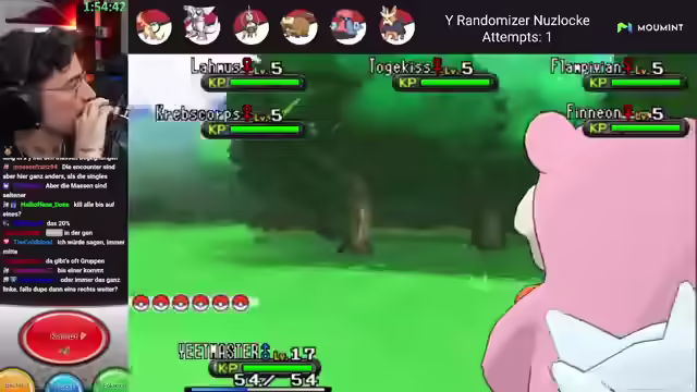 00:21:26Voluminas wird als erstes Pokémon gewählt, und der Streamer erklärt die Bedingungen für einen Reset in der Nuzlocke. Er betont, dass keine Items im Kampf verwendet werden dürfen, es sei denn, die Gegner tun dies. Standard-Hardcore-Nuzlocke-Regeln wie Level Cap und Set Mode werden bestätigt. Der Streamer hat Probleme, den Speicherstand des Emulators zu finden, was zu einer längeren Suche führt. Schließlich wird das Problem gelöst, und der Streamer freut sich, dass das Spiel geladen werden kann. Er erklärt, dass Sonderbonbons verwendet werden, um das Level-Cap einzuhalten, da das manuelle Leveln zeitaufwendig wäre. Der erste Kampf gegen Lord Männlich beginnt, und der Streamer gewinnt. Auf der ersten Route fängt er überraschend ein Palkia, da die ersten Routen eine 100% Fangchance haben. Er nennt das Palkia 'Allga' und levelt es direkt auf Level 5.