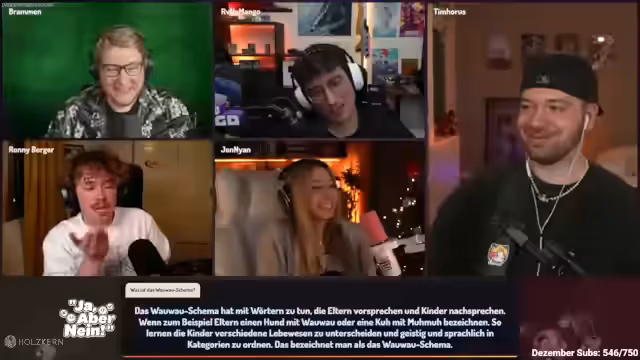 03:18:29Nach einer Theorie zum Wauwau-Schema als Saufspiel wird die korrekte pädagogische Erklärung geliefert: Es beschreibt den kognitiven Entwicklungsprozess von Kleinkindern, die Tiere zunächst alle als 'Wauwau' bezeichnen. Durch Elternvorsprechen lernen Kinder, zwischen verschiedenen Tieren zu differenzieren und sprachliche Kategorien zu entwickeln. Jen bestätigt dies aus ihrer Erzieherausbildung und verweist auf Parallelen zum Hundetraining.