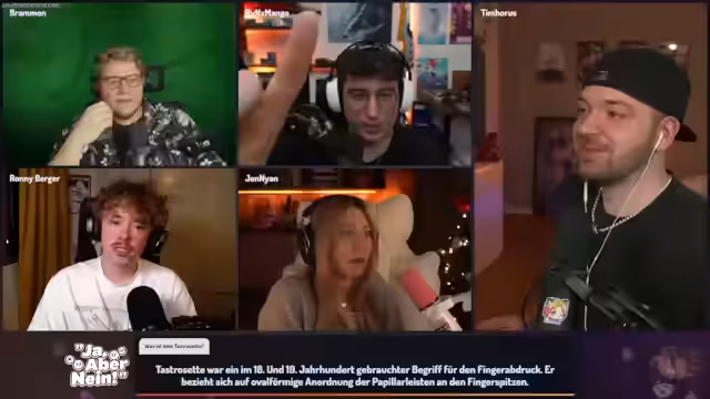 02:06:13Die Runde rätselt über den Begriff 'Tastrosette'. Nach anfänglichen Vermutungen zu anatomischen oder handwerklichen Bedeutungen wird der Begriff als veraltete Bezeichnung für Fingerabdruck erklärt. Ein Teilnehmer teilt mit, dass er aufgrund eines genetischen Defekts keine Fingerabdrücke hat, was zu einer Anekdote über Probleme bei biometrischen Kontrollen führt.