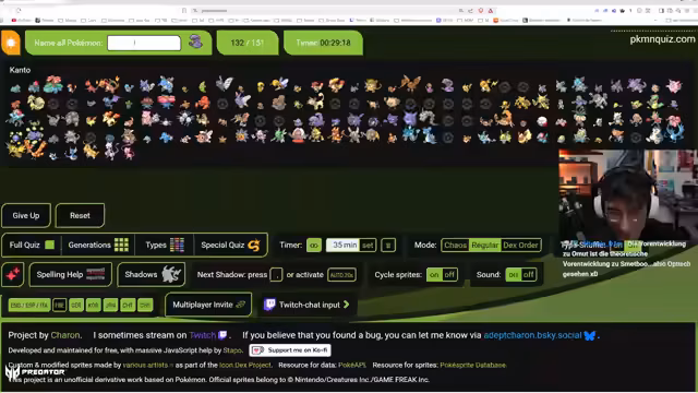 01:28:00Nachdem der Streamer die Safari-Zone hinter sich gelassen hat, führt er die Herausforderung fort, auch aus diesem Gebiet bekannte Pokemon aufzulisten. Ungeachtet der Schwierigkeiten entscheidet er sich nun, sich den Shadow-Pokemon zu widmen und aktiviert dafür den Shadow-Hotkey. Er analysiert die erhaltenen Pokemon wie Quapuzzi und Knuddeluft, stellt aber fest, dass er ohne externe Hilfe wie GoogleChat die vollständigen Namen vieler Pokemon nicht abrufen kann.