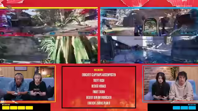 rvnxmango und @mahluna starten einen 2v2 Borderlands 4 Wettkampf. Teams, darunter Timekeeper und Bolt Hunter, treten in mehreren Challenges an. Ziel ist es, in vorgegebener Zeit Meilensteine zu erreichen und durch Levelaufstiege Punkte zu sammeln. Minuspunkte gibt es für das Überspringen von Zwischensequenzen. Controller-Steuerung stellt zusätzliche Herausforderung dar.