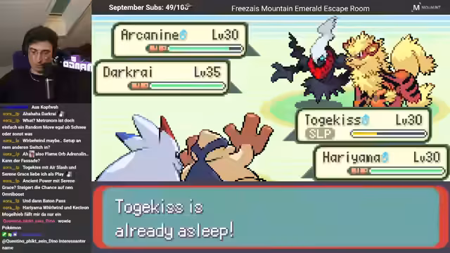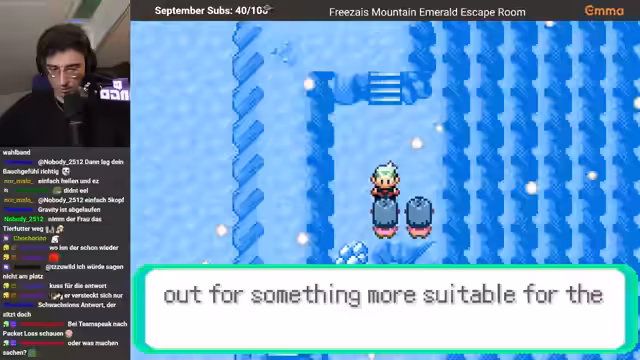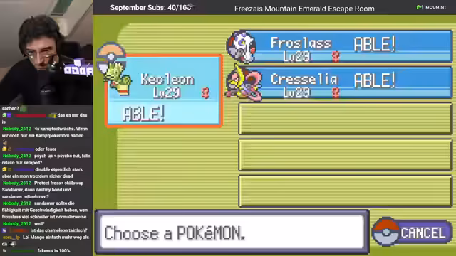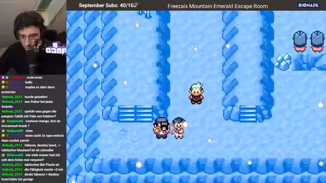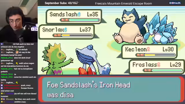 01:29:58Nach vielen Versuchen und dem Ausprobieren verschiedener Strategien gelingt es dem Streamer, das Rätsel zu lösen, indem er eine Kombination aus Destiny Bond, Avalanche und Gravity einsetzt. Der Streamer äußert seine Überraschung über die Interaktion zwischen Gravity und High Jump Kick, die zur Lösung des Rätsels führte. Nach der Lösung des Rätsels wirft der Streamer einen kurzen Blick auf den Stream von Masern. Anschließend wird ein neues Gebiet im Escape Room betreten, in dem zwei Doppelkämpfe anstehen. Der Streamer erhält ein Kecleon anstelle des zuvor eingesetzten Riolo, was neue Herausforderungen mit sich bringt. Es wird festgestellt, dass man nun immer den ganzen Weg zurücklaufen muss, um Attacken zu erlernen, was als umständlich empfunden wird. Der Streamer analysiert die bevorstehenden Kämpfe gegen Relaxo und Alola-Sandamer und überlegt sich Strategien, um diese zu besiegen.