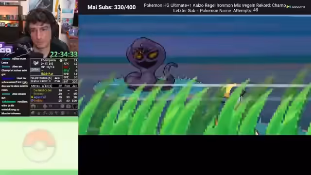 01:45:42Der Streamer kämpft gegen verschiedene Pokémon und trifft Reset-Entscheidungen basierend auf Stats und Fähigkeiten. Einige Pokémon werden als ungeeignet für den Run angesehen. Es gibt Diskussionen über Move-Sets und Abilities. Der Run wird aufgrund von Dragon Rage beendet.