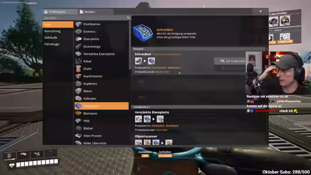 00:49:12Nach dem massiven Ausfall der Stromversorgung wird die Fabrik schrittweise wieder in Betrieb genommen. Es stellt sich heraus, dass einige Anlagen nicht mehr automatisch anlaufen und manuell aktiviert werden müssen. Nachdem die Basisproduktion von Energie und Ressourcen wieder sichergestellt ist, konzentriert sich der Streamer auf den nächsten großen Schritt: die Automatisierung der Motorenproduktion. Hierfür wird die Logistik der Fabrik erheblich erweitert und optimiert.
